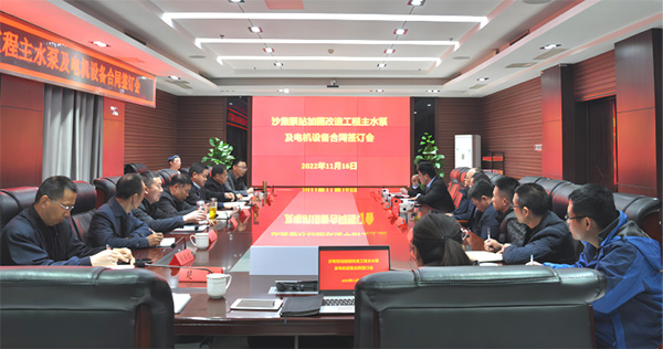 11月16日,沙集泵站加固改造工程主水泵及電機(jī)設(shè)備合同簽訂會(huì)在江蘇省宿遷市召開(kāi),中電電機(jī)作為主電機(jī)廠家出席了此次會(huì)議。