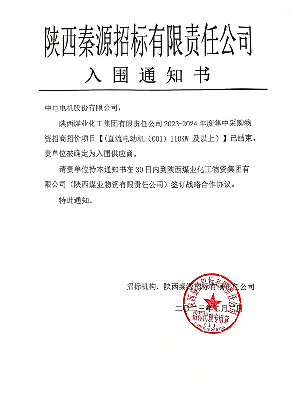 江南二月,春水浮光。值此盎然春景,中電電機(jī)喜獲陜西秦源招標(biāo)有限責(zé)任公司發(fā)布的入圍通知書,成為陜西煤業(yè)化工集團(tuán)有限責(zé)任公司直流電動機(jī)、非防爆交流電動機(jī)的供應(yīng)商。